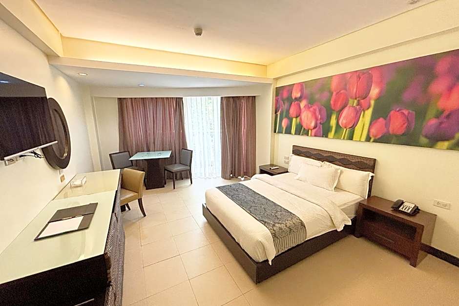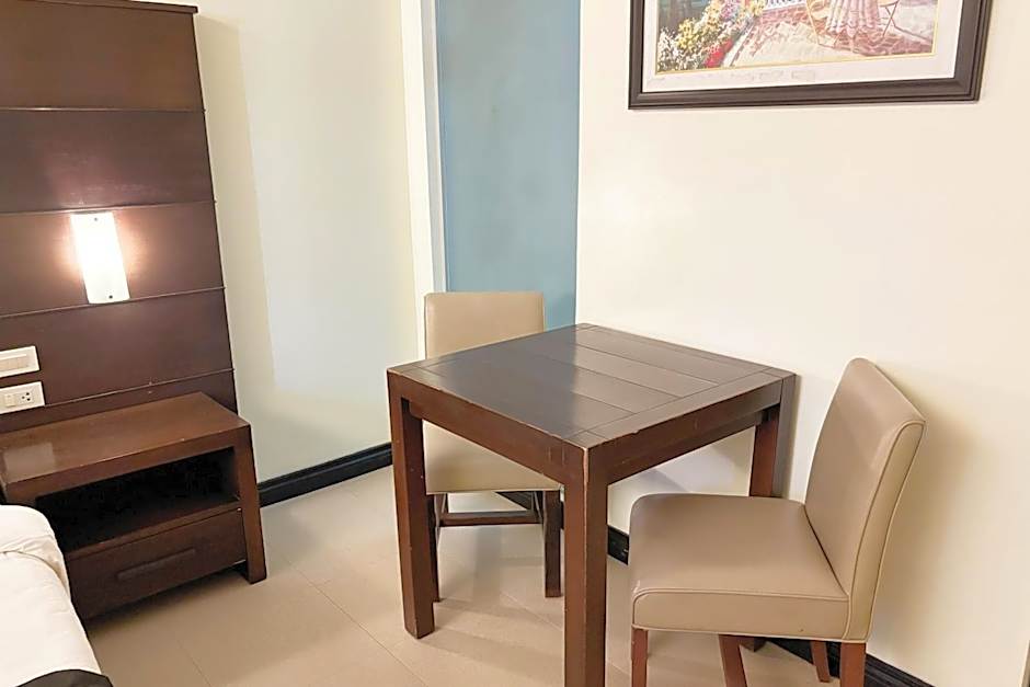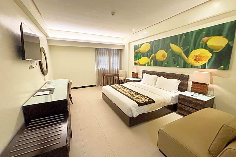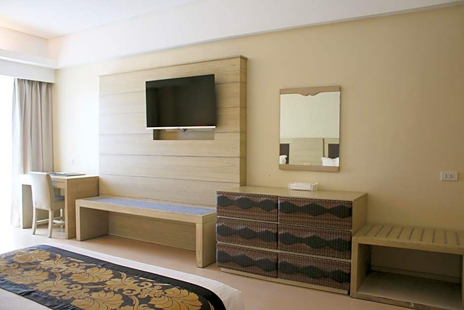 Room has a flat-screen cable TV, refrigerator and safety deposit box.